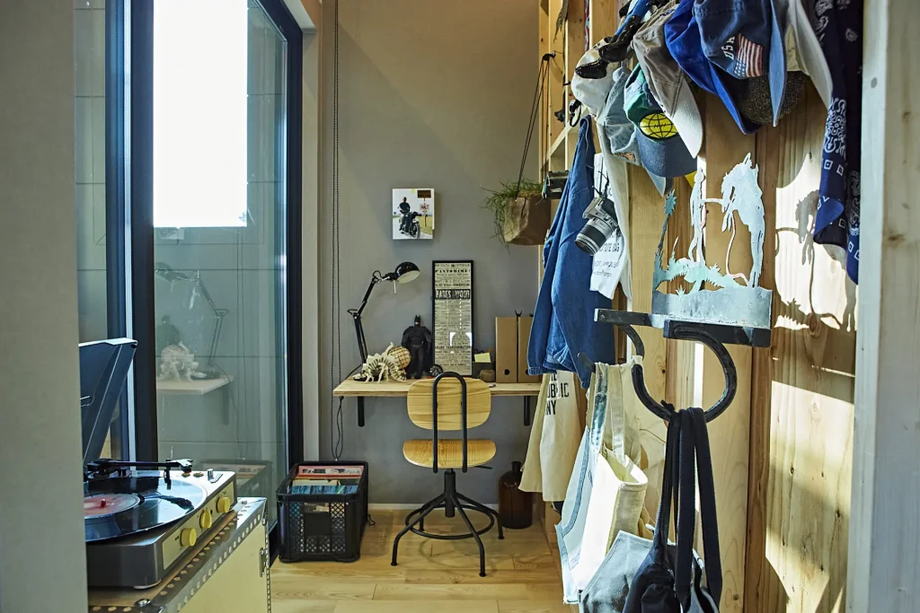 中2階にはロフトスペースを設け、ギアをコレクションしたり、ワークスペースとしても使える。