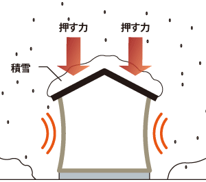 積雪量によって、その地域の「垂直最深積雪量」が設定されています。専用CAD計算では、これに対応した耐雪設計を行います。多雪地域の場合は、雪が積もった状態で地震が発生した場合も想定した構造設計も実施します。