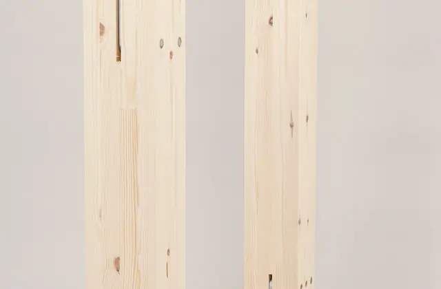 パワービルド工法の木材同士の接合は、専用金物を用いてドリフトピンで緊結し、接合強度を高めています。接合部にかかる力を算出し、その強度が十分かどうか、しっかりチェックしています。